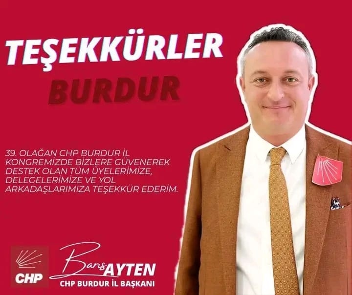 39. Olağan CHP Burdur İl Kongremizde bizlere güvenerek destek olan tüm üyelerimize, delegelerimize ve yol arkadaşlarımıza teşekkür ederim.”