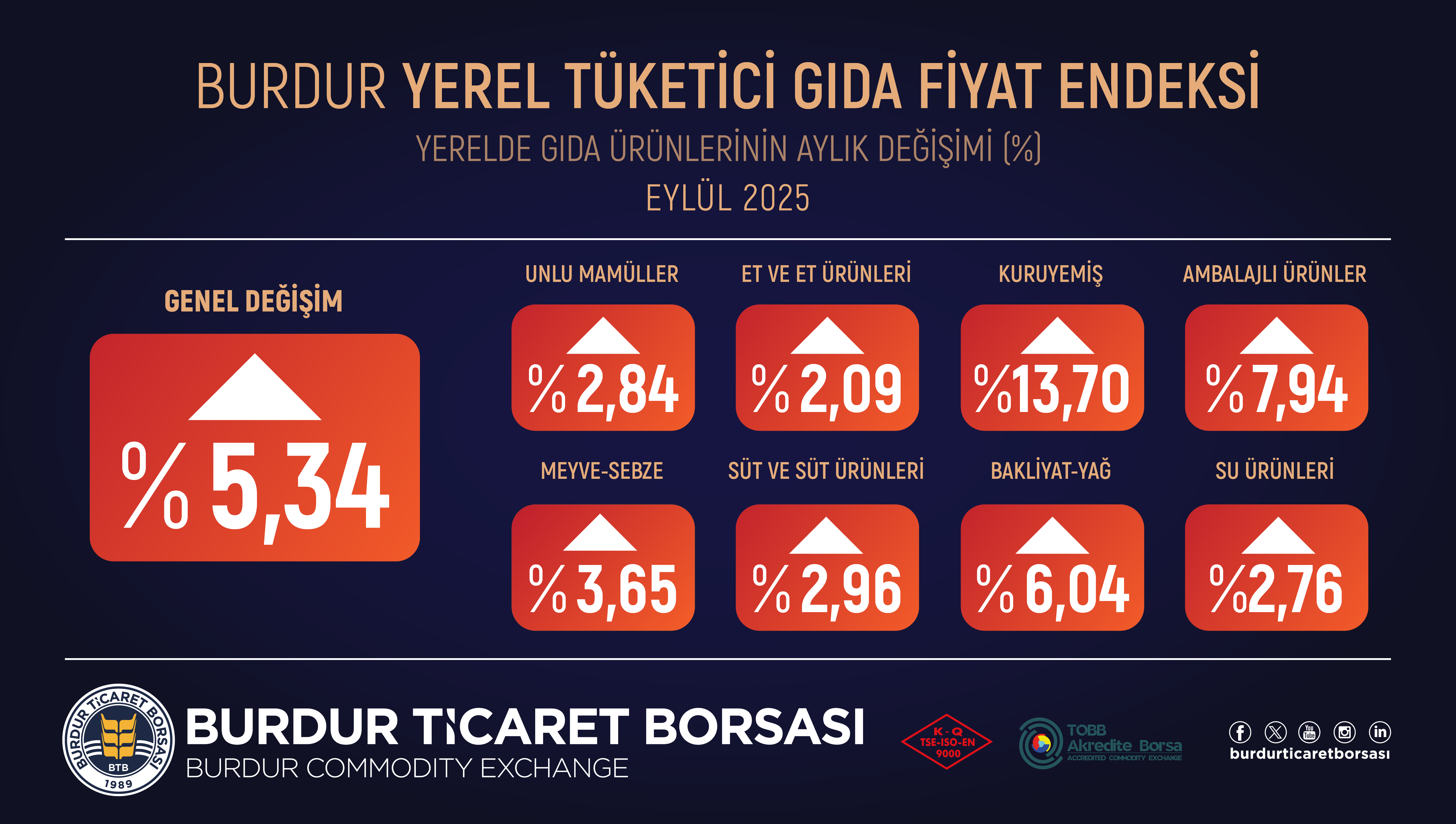 BTB EYLÜL AYI YEREL TÜKETİCİ GIDA FİYAT ENDEKSİ SONUÇLARI